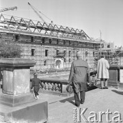 1973, Warszawa, Polska. Odbudowa Zamku Królewskiego. Przed nim widoczny Pałac pod Blachą. Fot. Lubomir T. Winnik, zbiory Ośrodka KARTA
