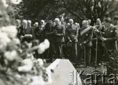 10.05.1945, Paryż, Francja. Urzędnicy ambasady RP oraz oficerowie Wojska Polskiego podczas uroczystego powitania Naczelnego Wodza gen. Tadeusza Bora-Komorowskiego, uwolnionego kilka dni wcześniej z niemieckiego obozu jenieckiego. Fot. NN, Studium Polski Podziemnej w Londynie
