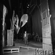 20-22.08.1981, Gdańsk, Polska. I Przegląd Piosenki Prawdziwej (reżyseria Marek Karpiński, scenografia Andrzej Czeczot). Na zdjęciu scena, nad którą wiszą karykatury: Władysława Gomułki i Piotra Jaroszewicza. Fot. Zbigniew Trybek, zbiory Ośrodka KARTA