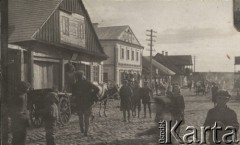 1920, Warszawa, Polska. Kolejka po chleb przed sklepem "Sprzedaż cukru, towarów kolonialnych, H. Makowicz". Fot. NN, zbiory Instytutu Józefa Piłsudskiego w Londynie