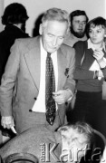 Lata 80., Warszawa, Polska. Spotkanie z Lechem Wałęsą w Klubie Inteligencji Katolickiej. Fot. Bogdan Łopieński, zbiory Ośrodka KARTA