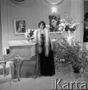 Grudzień 1983, Łódź, Polska. Teatr im. Stefana Jaracza, Łódź. Przedstawienie: "Opiekun Mojej Żony", autor Feydeau Georges. Reżyseria Włodzimierz Nurkowski, scenariusz Jerzy Walden (adaptacja), Mirosław Łebkowski (piosenki), choreografia Janina Niesobska, scenografia Anna Sekuła, muzyka Piotr Hertel. Premiera 10 grudnia 1983. Na scenie: Bożena Miller-Małecka. Fot. Witold Górka, zbiory Ośrodka KARTA