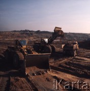 Marzec 1975, Dąbrowa Górnicza, woj. Katowice, Polska. Budowa Huty Katowice, wywożenie ziemi z placu budowy. Fot. Romuald Broniarek/KARTA