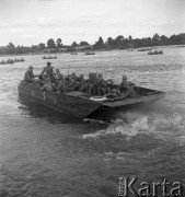 Wrzesień 1958, Warszawa, Polska. Wojska saperskie ćwiczą przeprawę przez Wisłę - żołnierze w łodziach. Fot. Romuald Broniarek, zbiory Ośrodka KARTA