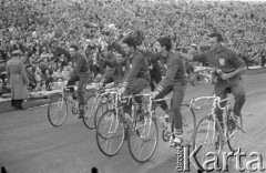 18.05.1962, Warszawa, Polska. Polscy zawodnicy na mecie Wyścigu Pokoju na Stadionie Dziesięciolecia. Fot. Romuald Broniarek/KARTA,