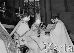 28.05.1972, Warszawa, Polska. Otrzymanie ścięceń kapłańskich z rąk kardynała Stefana Wyszyńskiego w archikatedrze św. Jana Chrzciciela. Fot. Adam Szymański, zbiory Ośrodka KARTA.
