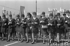 1.05.1969, Warszawa, Polska. Stewardessy w pochodzie pierwszomajowym. Fot. Romuald Broniarek/KARTA