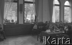 Sierpień 1980, Gdańsk, Polska. Strajk okupacyjny w Stoczni Gdańskiej im. Lenina. Sala BHP, za stołami siedzą delegaci strajkujących zakładów. Fot. Zbigniew Trybek, zbiory Ośrodka KARTA