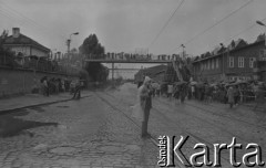 Sierpień 1980, Gdańsk, Polska. Strajk okupacyjny w Stoczni Gdańskiej im. Lenina. Widok z okna na bramę nr 2 i zgromadzony tłum. Fot. Zbigniew Trybek, zbiory Ośrodka KARTA