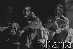 3.10.1980, Gdańsk, Polska. Pracownicy Stoczni Gdańskiej biorą udział w ogólnopolskim, jednogodzinnym strajku ostrzegawczym. Na zdjęciu stoczniowcy siedzą na w łodzi, w tle dźwigi i stoczniowcy na kadłubie okrętu. Fot. Zbigniew Trybek, zbiory Ośrodka KARTA