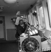 24.01.1971, Szczecin, Polska. Miesiąc po zakończeniu grudniowych strajków 1970 roku, robotnicy Szczecina znów zastrajkowali. Na rozmowy z nimi, do Stoczni im. A. Warskiego, przyjechał I sekretarz KC PZPR Edward Gierek z przedstawicielami rządu. Nz. Świetlica Stoczni Szczecińskiej im. Adolfa Warskiego. Czapka generała Wojciecha Jaruzelskiego i kask stoczniowca. Fot. Maciej Jasiecki, zbiory Ośrodka KARTA