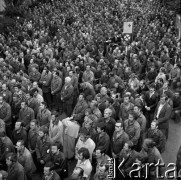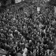 Sierpień 1980, Gdańsk, Polska. Strajk okupacyjny w Stoczni Gdańskiej im. Lenina. Tłum przed stoczniową bramą. Fot. Zbigniew Trybek, zbiory Ośrodka KARTA