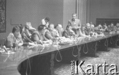 19.10.1957, Warszawa, Polska. Spotkanie kierownictwa Centralnej Rady Spółdzielczej z urzędnikami ambasady radzieckiej. Fot. Romuald Broniarek, zbiory Ośrodka KARTA