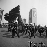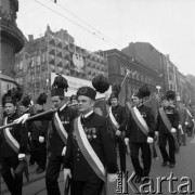 1.05.1969, Katowice, Polska. Pochód pierwszomajowy na ulicach miasta, górnicy w galowych strojach. Fot. Kazimierz Seko, zbiory Ośrodka KARTA