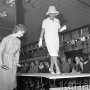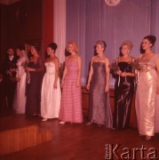 Maj 1983, Warszawa, Polska. Sala Kongresowa, wybory Miss Mazowsza będące eliminacją do wyborów Miss Polonia, prezentacja kandydatek w sukienkach. Fot. Jarosław Tarań, zbiory Ośrodka KARTA [83-44]