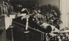 1940-1944, Radzyń Podlaski, woj. Lublin, Polska. Kościół pod wezwaniem Świętej Trójcy, uroczysty pogrzeb, trumna na katafalku. Fot. Kazimierz Petrulewicz, zbiory Ośrodka KARTA, kolekcję rodziny Petrulewiczów udostępniły Halszka i Wanda Żuromskie