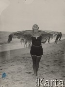 1927, brak miejsca. Kobieta w stroju kąpielowym na plaży. Fot. NN/Ośrodek Karta.