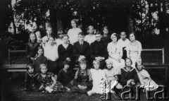 Po 15.09.1932, Warszawa, Rzeczpospolita Polska. Uczennice z Gimnazjum Żeńskim Zofii Pętkowskiej i Wiktorii Macińskiej w Łodzi podczas wycieczki szkolnej. W pierwszym rzędzie 3. z prawej siedzi Larysa Zajączkowska. Fot. NN, kolekcja Larysy Zajączkowskiej-Mitznerowej, zbiory Ośrodka KARTA