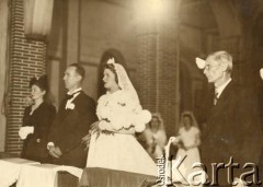 Lata 50., Apostoles, Misiones, Argentyna. Ślub jednej z córek Szychowskich. Pierwszy z prawej Juan Szychowski. Fot. NN, zbiory rodziny Szychowskich, reprodukcje cyfrowe w Bibliotece Polskiej im. Ignacego Domeyki w Buenos Aires (Biblioteca Polaca Ignacio Domeyko) i w Ośrodku KARTA w Warszawie