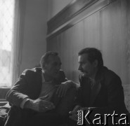 24.10.1980, Warszawa, Polska.. Sąd Wojewódzki, rozprawa sądowa w sprawie rejestracji Niezależnego Samorządnego Związku Zawodowego "Solidarność". Delegacja "Solidarności" obecna na sali sądowej nie wyraziła zgody na rejestrację związku z samowolnie wprowadzonymi przez Sąd Wojewódzki zmianami. Na zdjęciu Lech Wałęsa i Tadeusz Mazowiecki. Fot. NN, zbiory Ośrodka KARTA, udostępnił Krzysztof Frydrych.