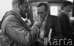 Sierpień 1980, Gdańsk, Polska. Strajk okupacyjny w Stoczni Gdańskiej im. Lenina. Stoją od lewej Bohdan Cywiński i Tadeusz Mazowiecki. Fot. Zbigniew Trybek, zbiory Ośrodka KARTA