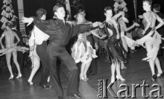 lata 60-te, Warszawa, Polska Tancerka Barbara Bittnerówna z partnerem scenicznym na deskach Operetki Warszawskiej. Fot. Irena Jarosińska, zbiory Ośrodka KARTA.