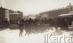 Lata 20. 30., Pińsk, woj. poleskie, Polska. Targ uliczny. Fot. NN, zbiory Archiwum Historii Mówionej Ośrodka KARTA i Domu Spotkań z Historią, udostępniła Ludwika Pawlak w ramach projektu "KARTA z Polakami na Wschodzie" (sygnatura nagrania - AHM_PnW_0913).