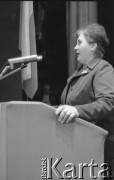 1.05.1981, Warszawa, Polska. Obchody święta 1 Maja na Placu Teatralnym, na fasadzie Teatru Wielkiego widoczny transparent z napisem: "Pokój, przyjaźń, socjalizm". Fot. Edward Grochowicz, zbiory Ośrodka KARTA