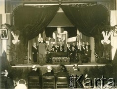 15-16.12.1981, Gdańsk, Polska. Msza św. dla stoczniowców, odprawiona przez księdza Bronisława Srokę w sali BHP Stoczni Gdańskiej im. Lenina podczas strajku okupacyjnego. Zdjęcie wykonano w nocy na kilka godzin przed wkroczeniem sił ZOMO i wojska, pacyfikacją strajku i aresztowaniem przywódców strajku. Przemawia Anna Walentynowicz. Fot. Stanisław Składanowski, zbiory Ośrodka KARTA