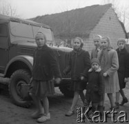 Czerwiec 1958, Polska. Radziecka delegacja Towarzystwa Przyjaźni Polsko-Radzieckiej, z wizytą w Polsce. Dzieci w strojach ludowych czekają na przyjazd prof. Łobanowa. Fot. Romuald Broniarek, zbiory Ośrodka KARTA