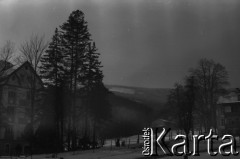 Grudzień 1958, Zakopane (okolice), Polska. Pasażerowie wsiadają do autobusu jadącego do Zakopanego. Fot. Romuald Broniarek, zbiory Ośrodka KARTA