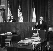6.06.1973, Warszawa, Polska. Realizacja serialu telewizyjnego "Noce i dnie", Jadwiga Barańska i Jerzy Kamas. Fot. Jarosław Tarań, zbiory Ośrodka KARTA [73-36]