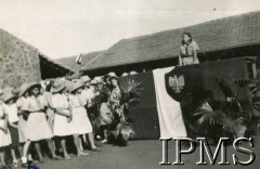 1942-1950, Tengeru, Tanganika. Osiedle dla polskich uchodźców. Grupa wychowanek sierocińca podczas przedstawienia "Noc świętojańska". Fot. NN, kolekcja: Osiedla polskie w Afryce, Instytut Polski i Muzeum im. gen. Sikorskiego w Londynie
