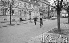 Lata 80-te, Warszawa, Polska. Strajk studencki, manifestanci na Krakowskim Przedmieściu przed bramą wejściową Akademii Sztuk Pięknych. Widoczny jest transparent "ASP - razem z Wami". Fot. Marcin Jabłoński, zbiory Ośrodka KARTA, przekazał Marcin Jabłoński.