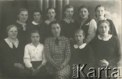 Ok. 1936, Łódź, woj. łódzkie, Rzeczpospolita Polska. Uczennice-maturzystki z Żeńskiego Gimnazjum Zofii Pętkowskiej i Wiktorii Macińskiej w towarzystwie opiekunki klasy Walerii Kaiersówny (siedzi w drugim rzędzie w środku). Z prawej strony, obok nauczycielki Larysa Zajączkowska. Fot. NN, kolekcja Larysy Zajączkowskiej-Mitznerowej, zbiory Ośrodka KARTA