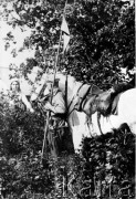 1914-1915, brak miejsca. Żołnierz z koniem. Zdjęcie pochodzi z albumu Zdzisława Poklewskiego-Koziełł. Fot. Zdzisław Poklewski-Koziełł, zbiory Ośrodka KARTA, przekazała Hanna Kunachowicz