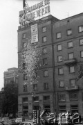 11.06.1987, Gdynia, Polska. Trzecia pielgrzymka Jana Pawła II do Polski. Nad ulicą wisi transparent o treści: "Witamy Piotra naszych czasów". Fot. Jerzy Szot, zbiory Ośrodka KARTA