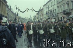 Styczeń 1988, Warszawa, Polska. Noworoczne iluminacje, na zdjęciu ulica Nowy Świat. Fot. Edward Grochowicz, zbiory Ośrodka KARTA
