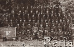 1935, Rembertów k/Warszawy, Polska. Szkolenie saperów - zdjęcie grupowe żołnierzy na terenie garnizonu wojskowego. W tle widoczne są drzewa. Fot. Józef Tarań, Fundacja Ośrodka KARTA kolekcję zdjęć przekazała Lucyna Kumiszczo