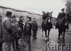 Listopad 1989, Berlin, Niemcy. Plac Poczdamski, upadek Muru Berlińskiego, spotkanie milicjantów z NRD z policjantami z RFN. Fot. Jerzy Patan, zbiory Ośrodka KARTA, przekazał Jerzy Patan.