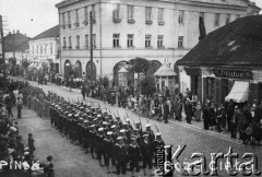 11.11.1928, Kosów Poleski, woj. poleskie, Polska. Odsłonięcie pomnika wzniesionego z okazji dziesięciolecia odzyskania niepodległości. Prawosławny duchowny stojący na stopniach pomnika oraz wierni. Fot. Feliks Drozdowski, zbiory Ośrodka KARTA, Pogotowie Archiwalne [PAF_050], udostępnił Krzysztof Drozdowski