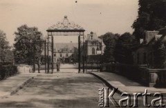 Czerwiec 1941, Sambor, obwód Lwów, Ukraina, ZSRR. Wkroczenie wojsk niemieckich do Sambora, brama powitalna postawiona przez mieszkańców miasta. Fot. NN, zbiory Ośrodka KARTA, udostępnił Władysław Raczkowski.