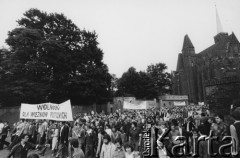 Lipiec 1959, Katowice, Polska. Obchody piętnastolecia PRL. Mieszkańcy miasta na wiecu z udziałem Nikity Chruszczowa. Fot. Romuald Broniarek/KARTA