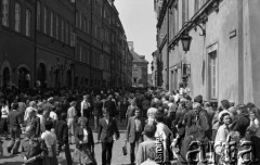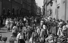 1982, Warszawa, Polska. Msza za Ojczyznę w Kościele św. Stanisława Kostki na warszawskim Żoliborzu. Widoczni są ksiądz Jerzy Popiełuszko, aktor Kazimierz Kaczor (drugi od lewej) oraz wierni przybyli na mszę. Fot. Adam Szymański, zbiory Ośrodka KARTA, kolekcję zdjęć przekazał Adam Szymański