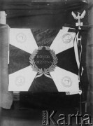 1919-1920, brak miejsca. Kawalerzyści 15 Pułku Ułanów na koniach, w środku chorąży pocztu sztandarowego ze sztandarem pułku. Fot. NN, Instytut Polski i Muzeum im. gen. Sikorskiego w Londynie