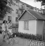 Październik 1970, Warszawa, Polska. Kobieta z dzieckiem w wózku i dziewczynka z wózkiem dla lalek, podpis autora: "Dwie mamy". Fot. Jarosław Tarań, zbiory Ośrodka KARTA [70-96]