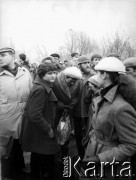 15.12.1981, Paryż, Francja Manifestacja przeciwko wprowadzeniu w Polsce stanu wojennego zorganizowana przez związki zawodowe. Była pierwszą, w której wzięły udział największe francuskie związki zawodowe poza komunistami. Obok siebie szły: Force Ouvriere, CFDT - Confédération française démocratique du travail, CFTC - Confédération Française des Travailleurs Chrétiens, CGC- Confédération Française de l'Encadrement - Confédération Générale des Cadres. Około godziny 17-18 kilkadziesiąt tysięcy manifestantów ruszyło spod wieży Montparnasse. Na zdjęciu Zofia Trzaska i Wojciech Sikora. Fot. Andrzej Mietkowski, zbiory Ośrodka KARTA