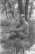 Lato 1940, Weier im Emmental, Szwajcaria. Internowani żołnierze 2. Dywizji Strzelców Pieszych podczas wycieczki po okolicy. 1. z prawej stoi prawdopodobnie żołnierz francuski. Fot. Jerzy Konrad Maciejewski, zbiory Ośrodka KARTA