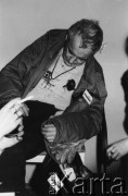 1981, Warszawa, Polska. Spotkanie przedstwicieli środowisk opozycyjnych. Na zdjęciu: uczestnik spotkania. W tle godło państwowe. Fot. NN, zbiory Ośrodka KARTA/Independent Polish Agency (IPA), przekazał Józef Lebenbaum