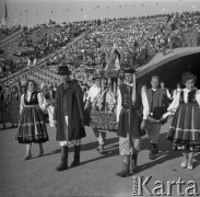 Sierpień 1964, Warszawa, Polska. Próba centralnych dożynek na Stadionie Dziesięciolecia, występ zespołu ludowego. Fot. Romuald Broniarek/KARTA